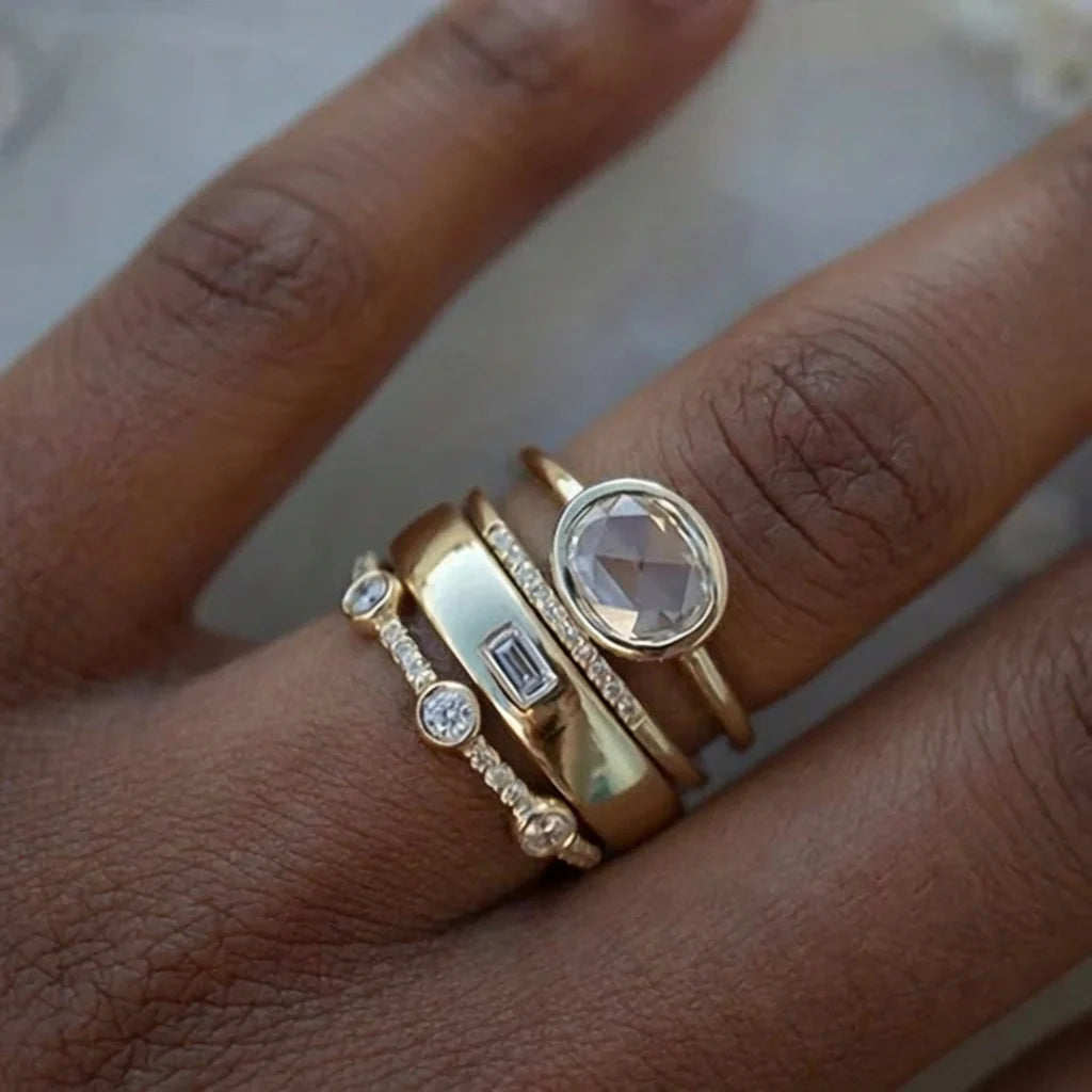Lily - Vintage Gold and Zirconia Ring Set